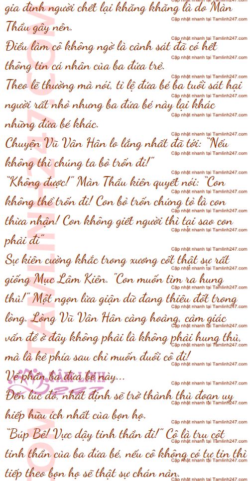 Dưới lầu, đầu bếp không hề rời đi, đang báo cáo cho Mục Lâm Kiêu: “Tổng giám đốc Mục, bây giờ cô Vũ đi làm móng tay vẫn chưa về”