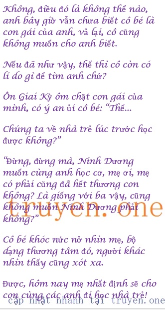 “Không… Không phải đâu, sau khi ba dẫn chúng con về, đã cho anh cùng anh Thành học cùng một cái nhà trẻ rồi, còn Ninh Dương thì không được, mẹ ơi, ba… ba không cho Ninh Dương đi…