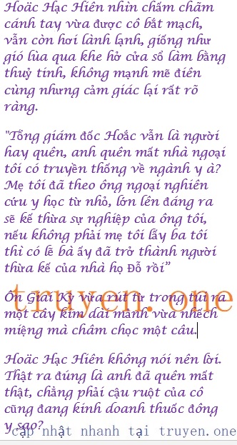 Cô lạnh lùng cầm lấy bàn tay anh bắt đầu bắt mạch, Hoắc Hạc Hiên hoàn toàn không còn thấy được bộ dạng nhu nhược yếu đuối ngày xưa trong cô bây giờ nữa.
