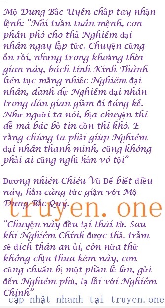 Mà Chiêu Vũ Đế cũng không nhìn hắn, nói với Mộ Dung Bắc Uyên: “Nói với Thẩm Hình viện, nói rằng Nghiêm Chính bị người khác vu oan.