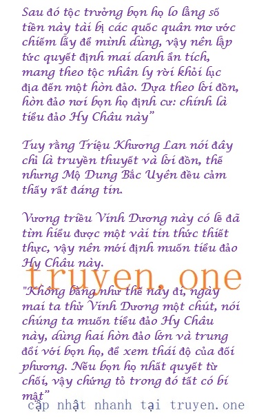 “Nếu chàng tin thiếp thì không được đáp ứng. Chàng cũng biết, thiếp đã từng sống qua một đời, nơi thiếp sống đời trước cách tiểu đảo Hy Châu không xa. Bởi vì trong nhà của phú thương nuôi dưỡng thiếp có thân thích làm sinh ý bên hải vận, bởi vậy khi phái người đi điều tra tiểu đảo Hy Châu. Nếu như thiếp không nhớ lầm, tiểu đảo Huy chây này rất có khả năng có bảo tàng, là từ một gia tộc xa xưa ẩn cư trên đảo. Chàng có từng nghe đến tộc Lưu Tâm?”