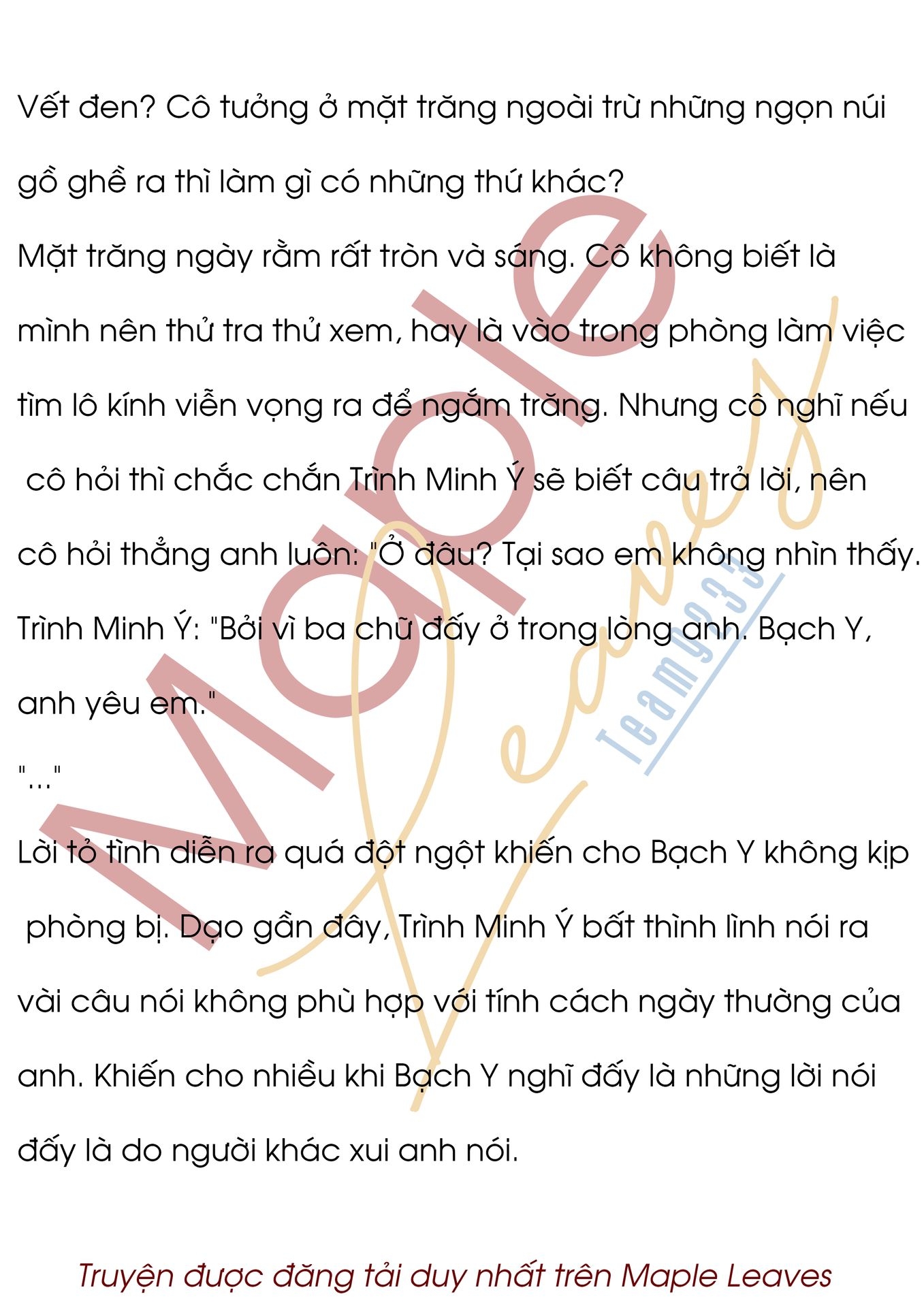 Vì thế Bạch Y nghe theo lời của Trình Minh Ý. Lúc leo lên giường nằm ngủ thì cô vẫn cầm theo điện thoại. Từ trong điện thoại truyền ra một giọng hát trầm nhưng nghe rất ấm. Có thể Trình Minh Ý không giỏi nói những lời ngọt ngào. Nhưng cô thấy anh hát rất hay. Những ca từ dịu dàng du dương đó khiến cho lòng Bạch Y cảm thấy rất ấm áp. Và cô ngủ thiếp đi lúc nào cô cũng không biết.