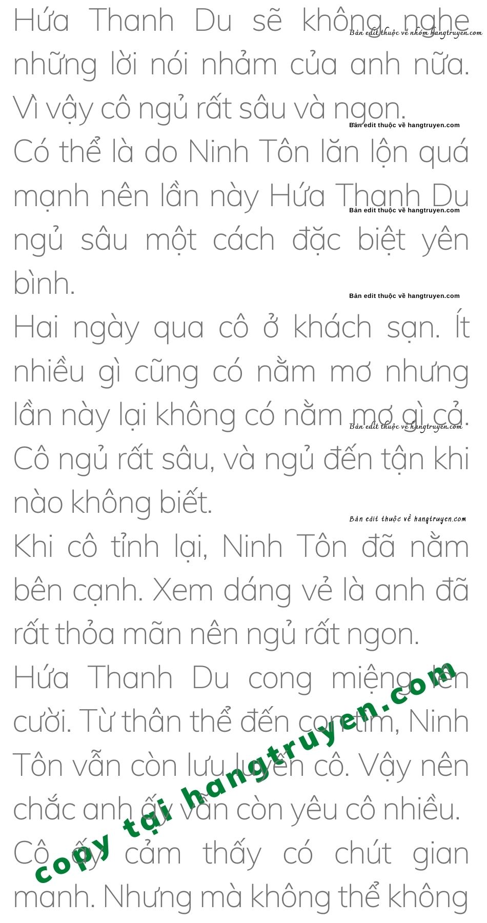 Khi bị Ninh Tôn ép vào tường nhà tắm thì Hứa Thanh Du có chút hoảng hốt. Vốn dĩ cô nghĩ rất đơn giản, cô chỉ muốn dọn dẹp xong chăn ga gối nệm thì lên giường ngủ nghỉ một giấc thật đã.
