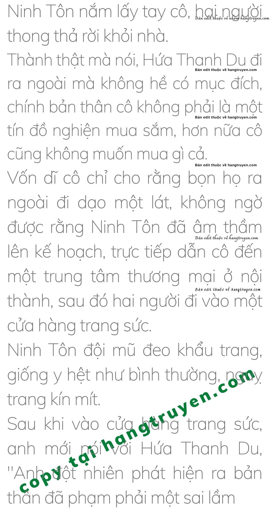 Ninh Tôn nhẹ nhàng hôn lên tai của cô, “Không đến công ty, anh muốn cùng em ra ngoài đi dạo.”
