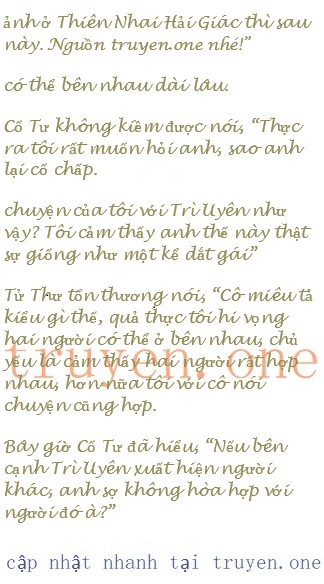 Tử Thư nhìn chằm chằm Cố Tư một lúc, đột nhiên bật cười, “Có chứ, chẳng phải chúng ta đều từng đi rồi nhưng chưa chơi đã sao. Lận này đúng lúc lắm,đưa chồng cũ của cỗ cùng đi, chỗ Thiên Nhai Hải Giác đó phải đi cùng người yêu mới có ý nghĩa”