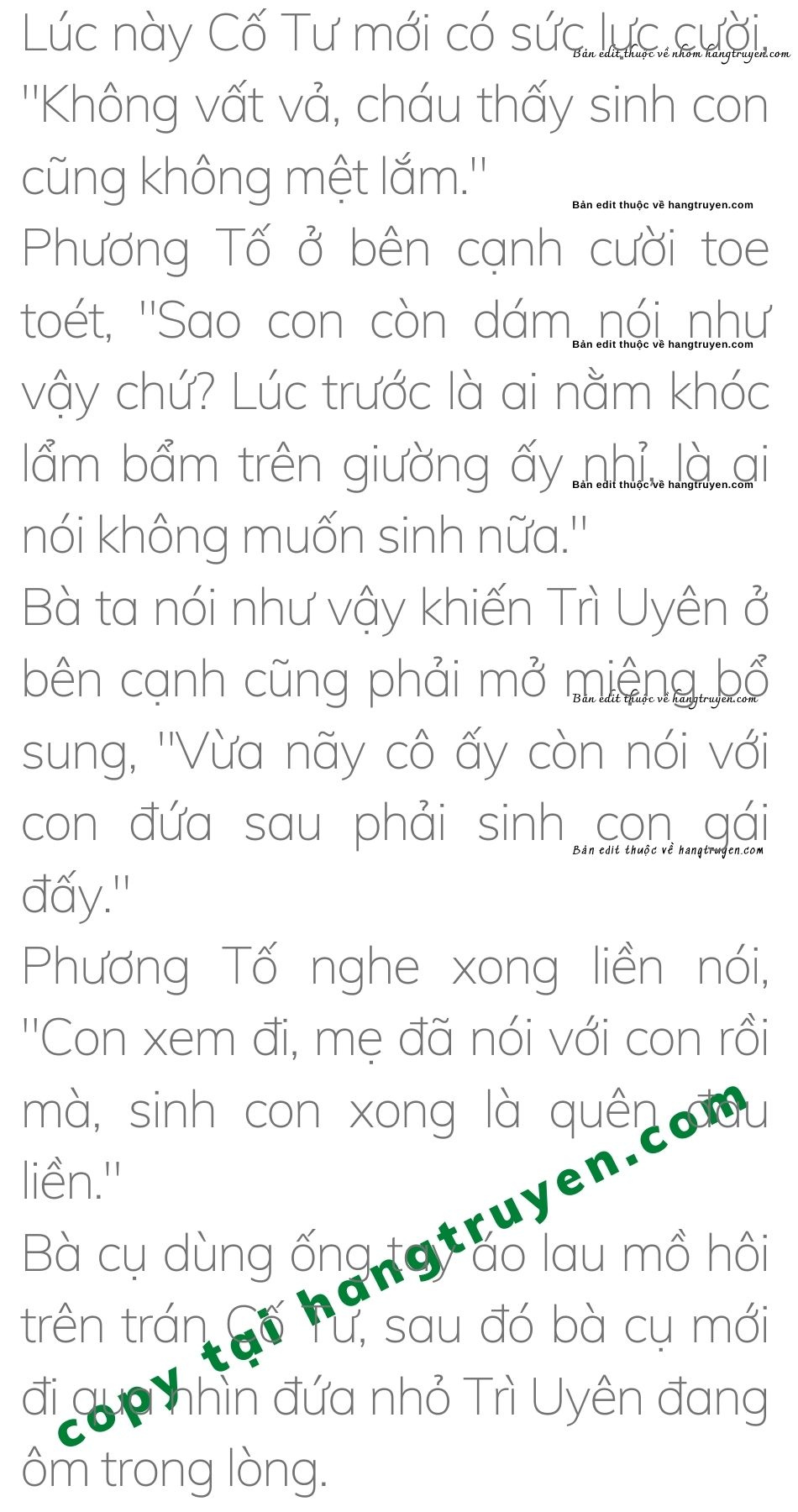 Cố Tư cười toe toét, “Tôi nói cho cô biết sinh con đau kinh khủng.”