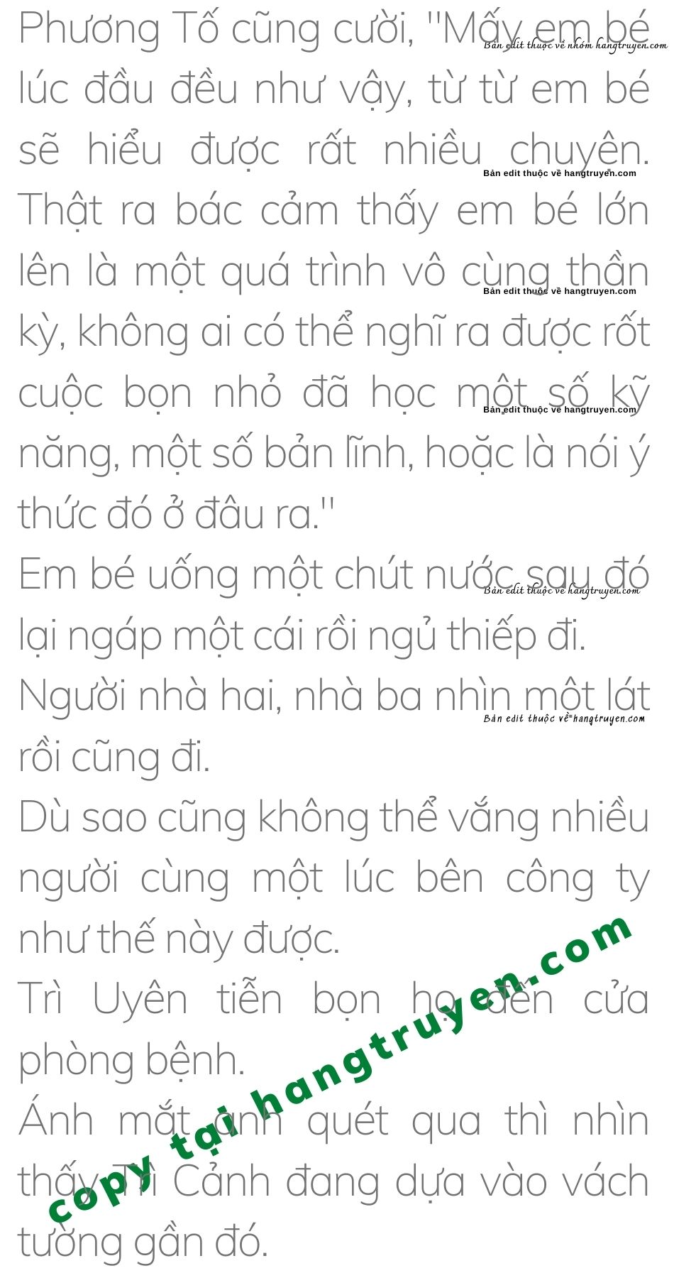 Cô lại đói, lúc cô ngồi dậy đã thấy Phương Tố đang ôm em bé, vẻ mặt đầy yêu thương.