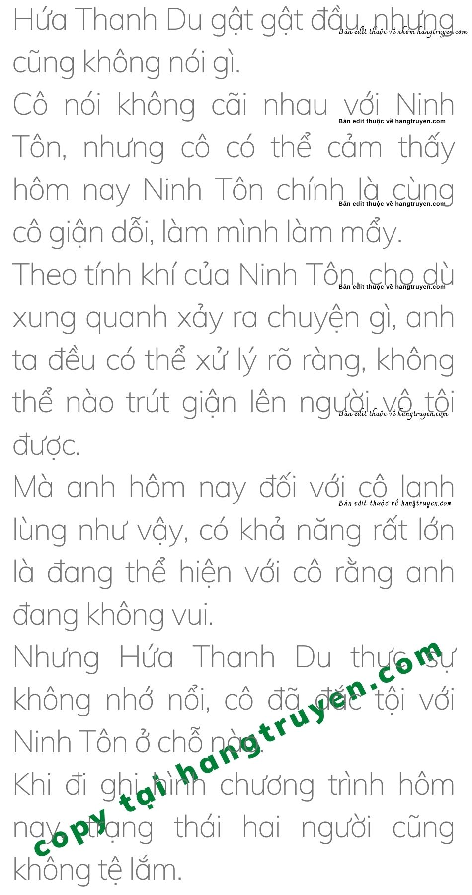 Ninh Tôn khóe mắt khẽ chuyển, nhìn chằm chằm Hứa Thanh Du rất lâu, sau đó anh ngửa đầu, uống cạn cốc nước mật ong, đặt chiếc cốc xuống rồi nói, “Đó là vấn đề của riêng tôi, cô không cần phải để ý đến đâu.”