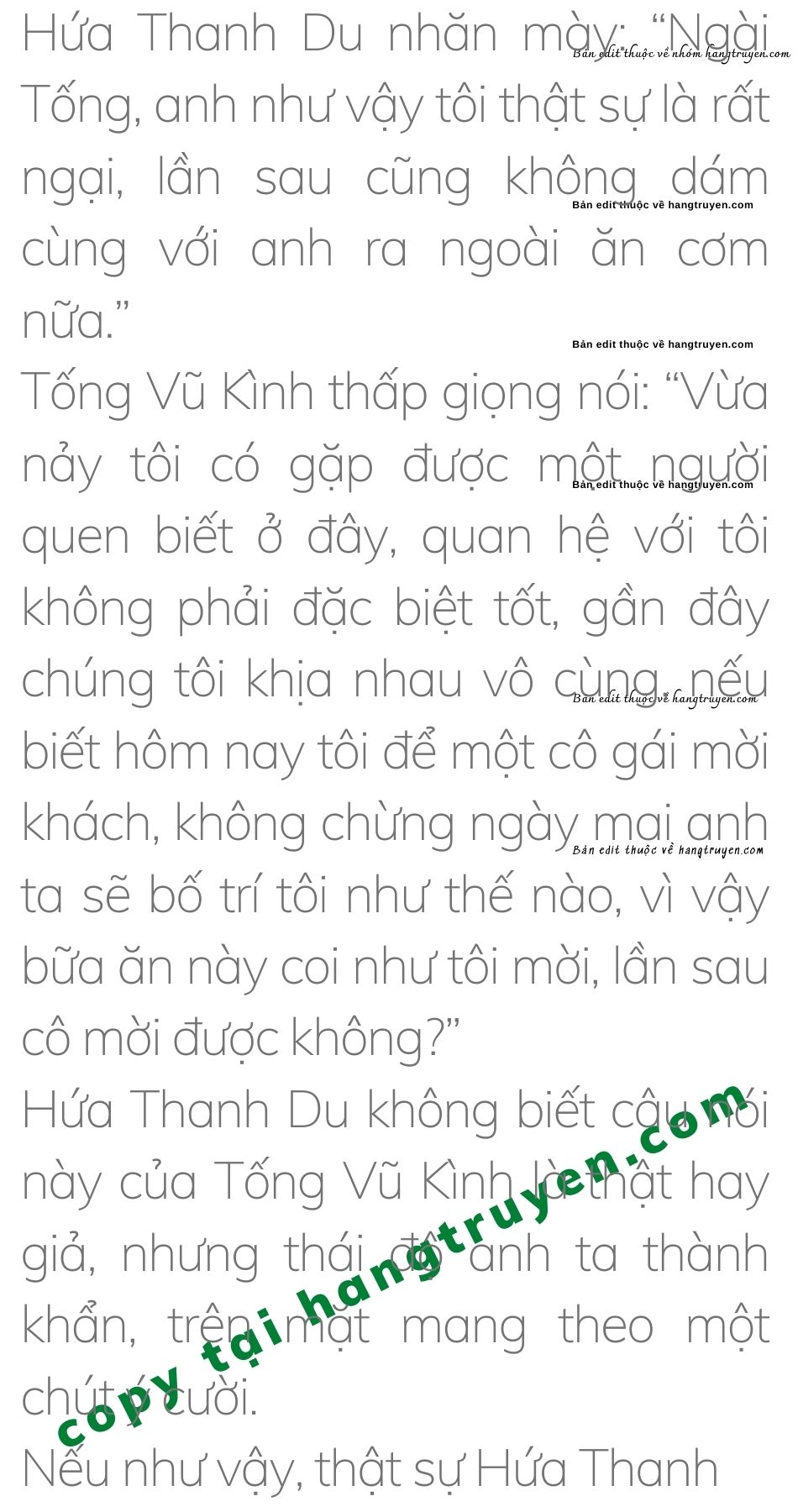 Tống Vũ Kình thở dài: “Không ngờ một cô gái như cô nhìn sự việc cũng rất thống thấu.”